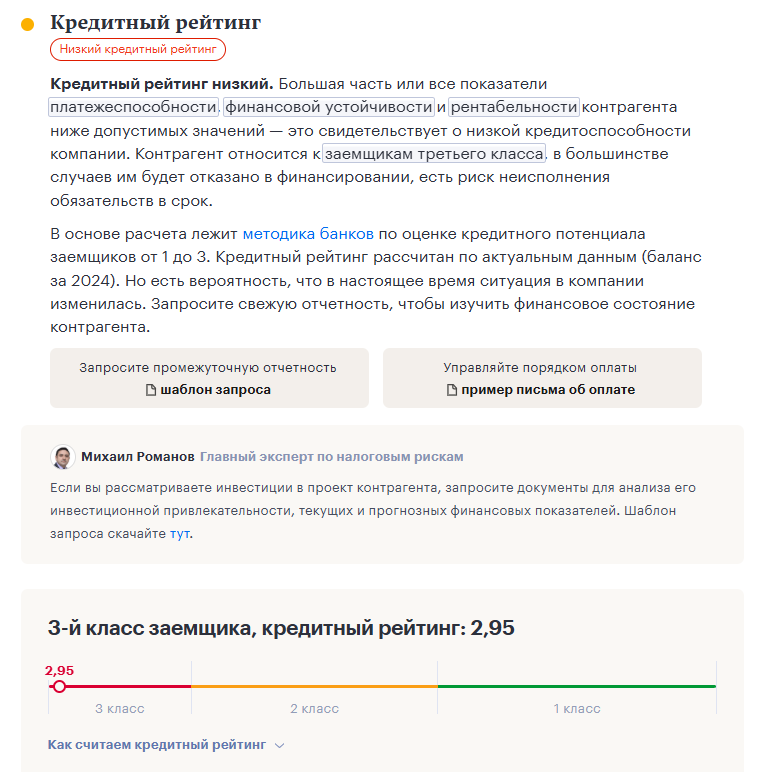 Углубленная аналитика по финансовым показателям в динамике, 400 алгоритмов и 60 000 формул. Привязка к среднеотраслевой норме. Выводы по каждому значению с рекомендациями, как обезопасить сделки.